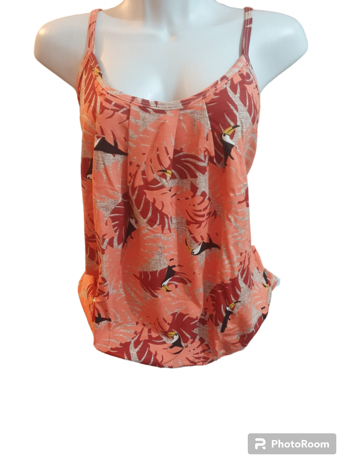 Blusa estampada em malha viscolycra, barra na parte inferior da blusa, decote canoa.
